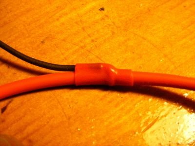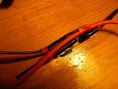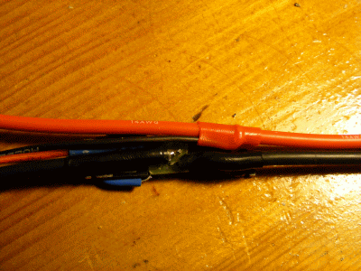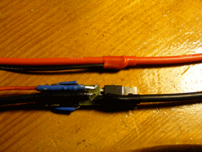 Oczywiście jak każde połączenie, izolujemy koszulką termokurczliwą. Ostatni kabel w kolejności to ten idący do baterii:
